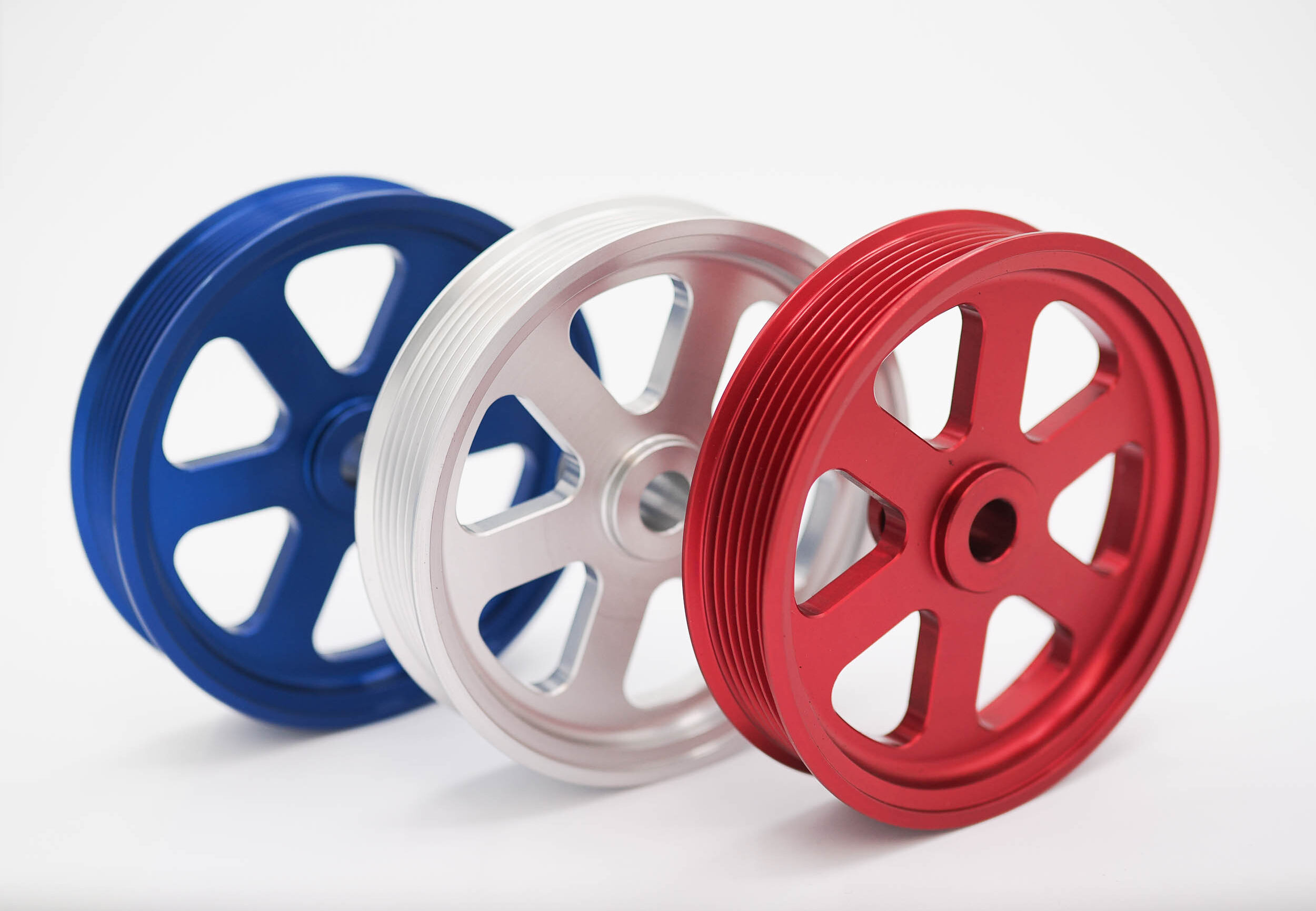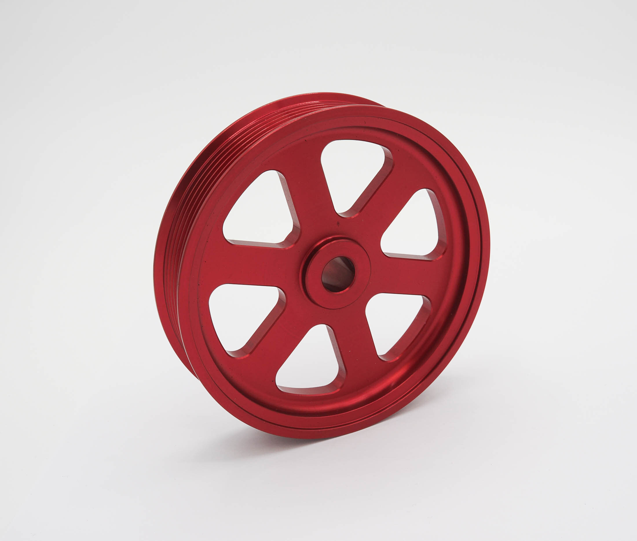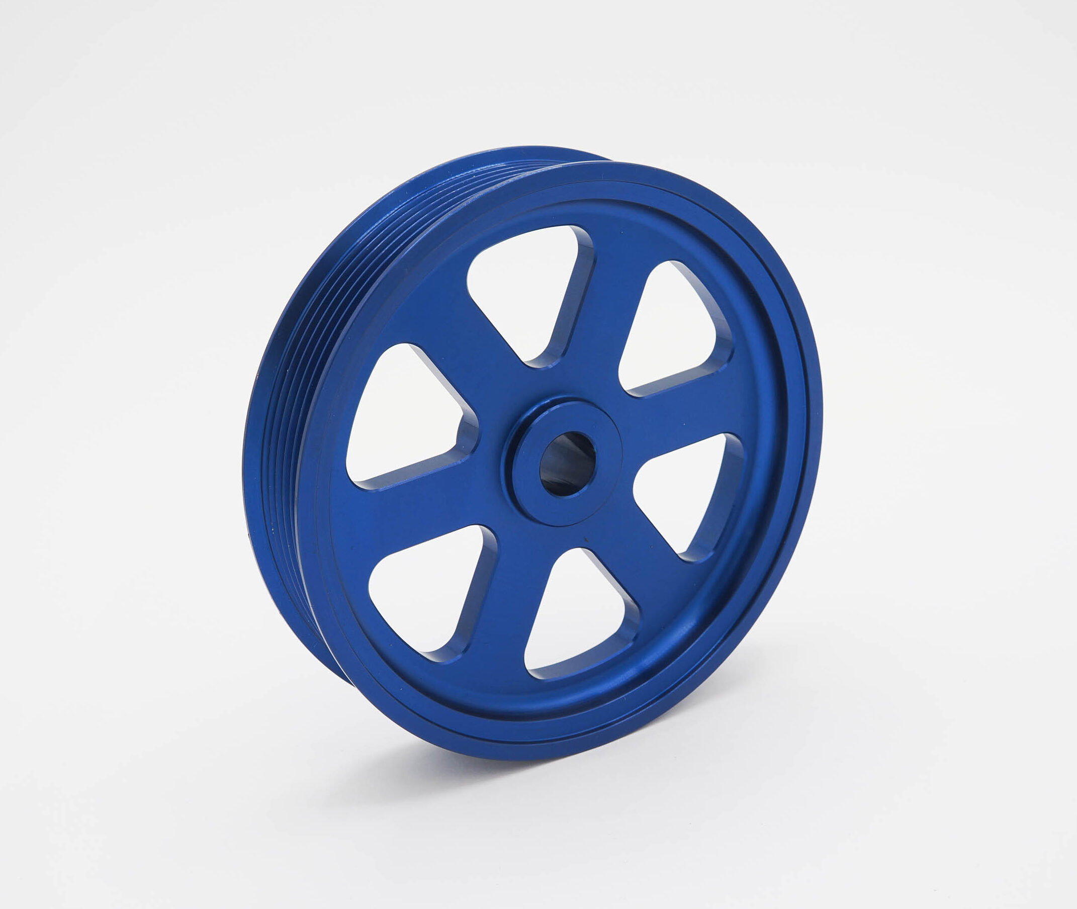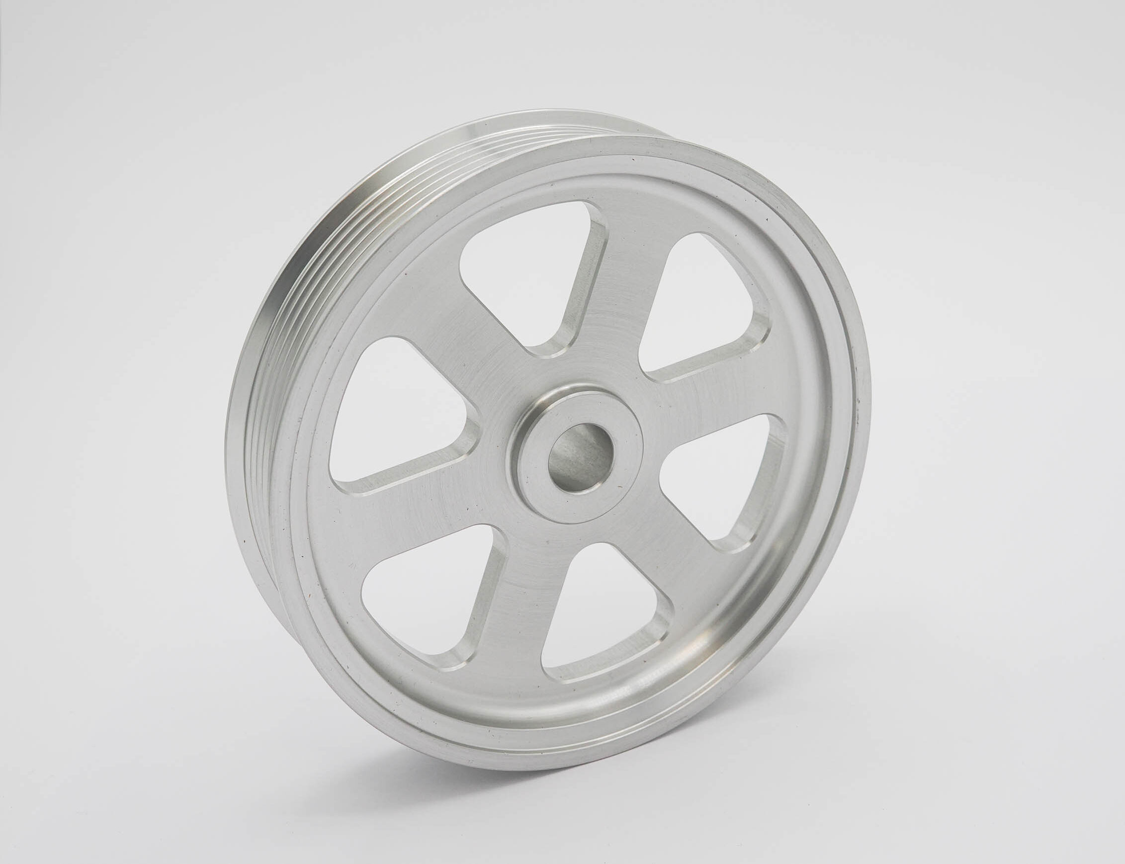 This pulley is designed to replace the factory plastic power steering pulley that is prone to failure, made from billet 6061 aluminium.