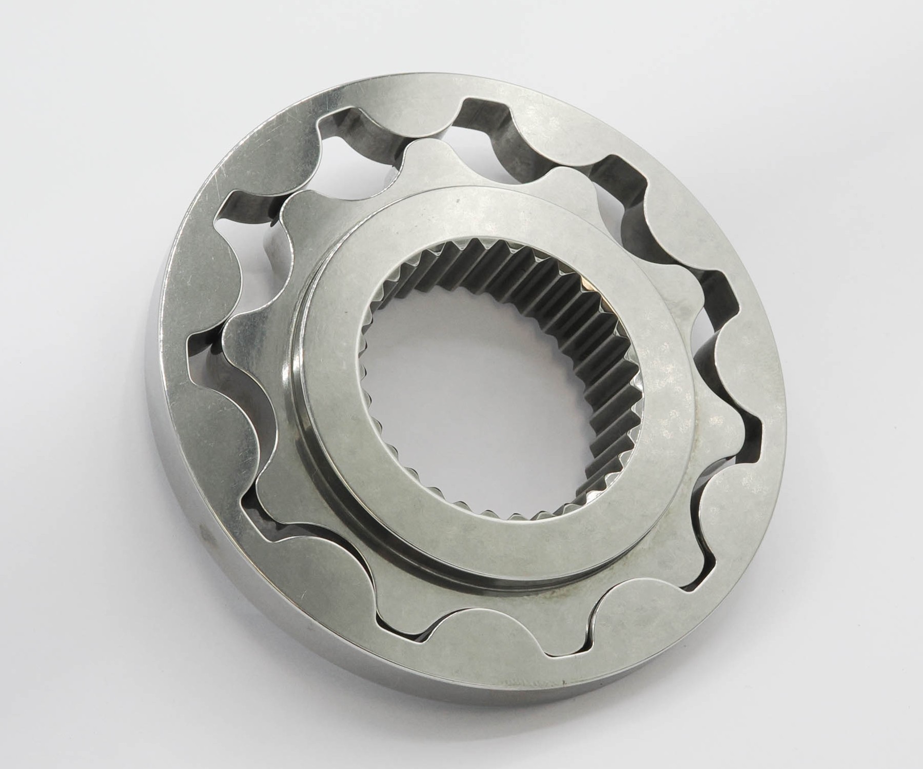 With the inner and outer gear sitting in front of you and the nose/seal diameter facing toward you, the outer gear should be laid over the inner gear with the “wave” profile in a clockwise orientation. The 2 wave “points” should be facing in the same direction (see assembly instructions).