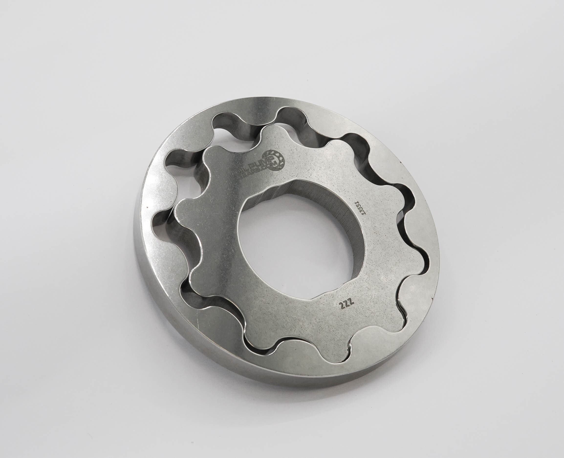 With the inner and outer gear sitting in front of you and the nose/seal diameter facing toward you, the outer gear should be laid over the inner gear with the “wave” profile in a clockwise orientation. The 2 wave “points” should be facing in the same direction (see assembly instructions).
